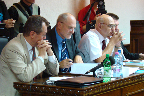 La randul lor, reprezentantii fractiunii majoritare si-au expus contraargumentele, accentul fiind pus pe precedentele avute de CC, cand cazurile cu caracter individual sau procedural n-au fost acceptate spre examinare de instanta superioara. Avocatul Alexandru Tanase a citat fiecare articol din Constitutie, care, in opinia comunistilor, au fost incalcate de AIE, aducand argumente ce dovedesc contrariul. Doctorul in drept constitutional, Victor Popa, a mentionat, in cadrul luarii sale de cuvant, ca „parlamentul, fiind un organ colectiv deliberativ, orice decizie trebuie s-o ia prin vot. La sedinta din 28 august, decanul de varsta, Ivan Calin, a refuzat sa puna la vot chiar ordinea de zi. Deci, Calin a facut abuz de functie”.