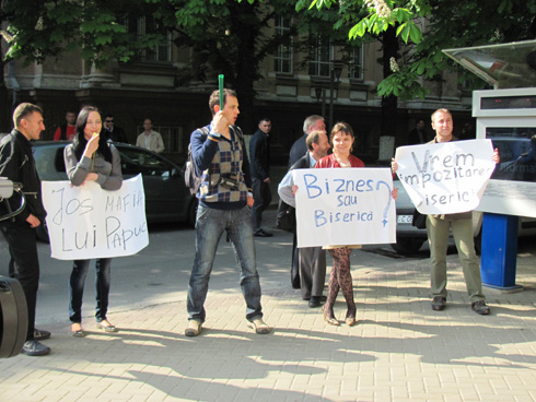 Protest în faţa Primăriei „Biznes sau biserică?”