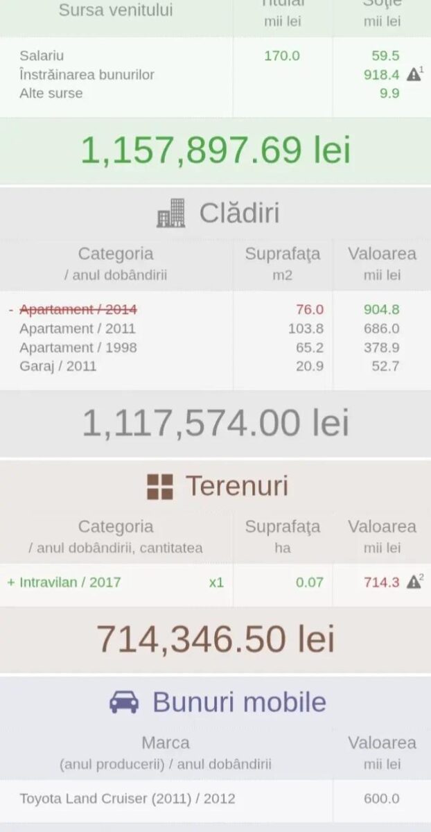 „- Vânzând casa, cumpărând-o apoi, ați reușit să aveți și un depozit de jumătate de milion de lei? – Da. Este salariul acumulat în cadrul familiei. Este apartamentul care este dat în chirie. Sunt făcute, achitate impozitele pentru tot”.