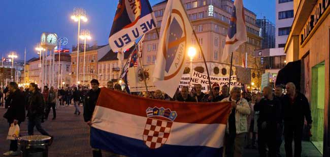 Ieri, însă, aproape o mie de oameni au protestat în centrul capitalei Zagreb faţă de planurile guvernului de a intra în familia europeană. Câţiva oameni au fost răniţi după ce un grup de activişti a încercat să dea jos steagul Uniunii Europene din centrul oraşului.