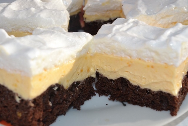 Ingrediente blat: 300 gr zahăr, 6 linguri apă, 180 gr faină, 6 ouă, 1 praf de copt, 1 zahăr vanilat, 1 linguriţă de vin, 1 linguriţă de cacao