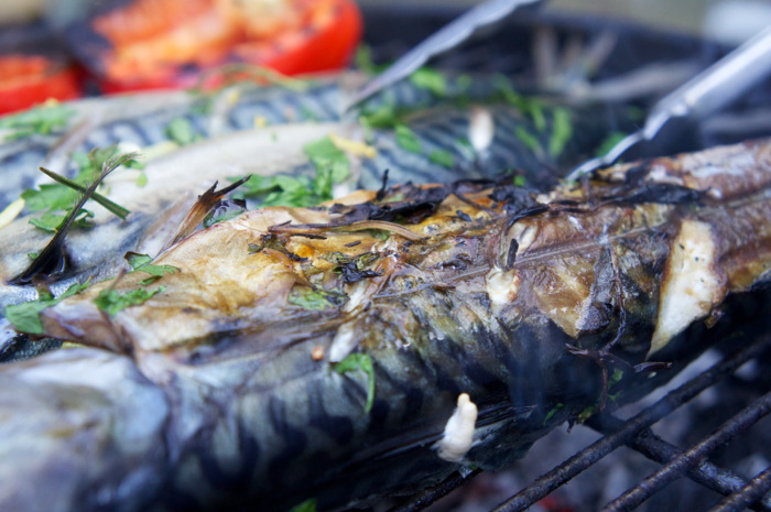 Pestele se curata se spala si se condimenteaza cu sare si piper si se unge cu un pic de ulei de masline.Se cresteaza din loc in loc si se aseaza pe gratarul incins .