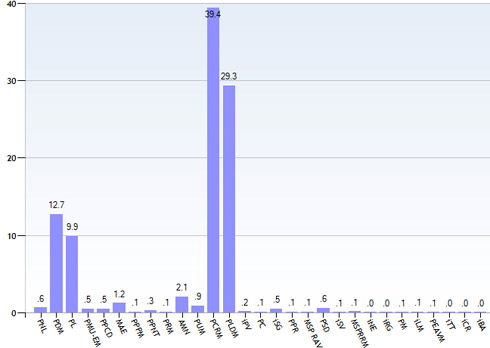 Conform rezultatelor anunțate de CEC, ca urmare a prelucrării a 97,5% din voturile exprimate preferințele politice arată așa: