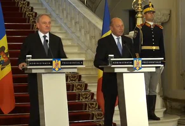 Cei doi şefi de stat au discutat despre drumul R. Moldova spre Uniunea Europeană, proiectele de infrastructură comune şi poziţia ambelor părţi în problema transnistreană. Preşedintele României, Traian Băsescu, a ţinut să asigure că niciun guvern român nu va abandona proiectele de anvergură bilaterale cum ar fi construcţia conductei de gaz Iaşi-Ungheni şi interconectarea liniilor energetice Suceva-Bălţi sau Fălciu-Goteşti. "Nu există Guvern al României, indiferent ce structură politică are, care să nu susţină trei lucruri fundamentale în politica externă: România în NATO, România în UE, relaţia strategică România-R. Moldova. Sunt piloni recunoscuţi de toate partidele indiferent de orientarea lor politică", a declarat Traian Băsescu.