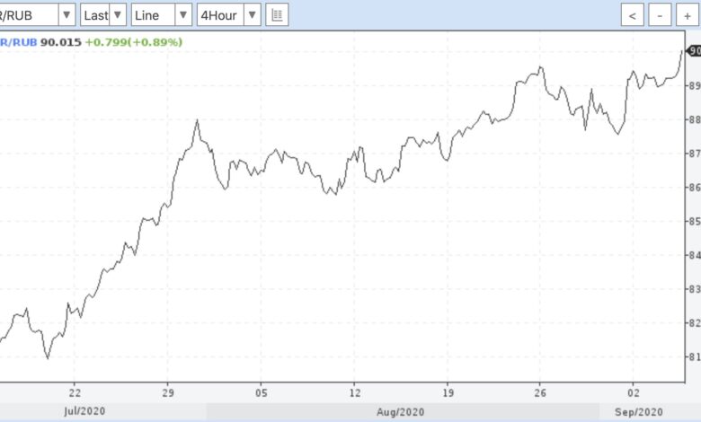 Pentru prima dată în patru ani, cursul euro a depășit 90 de euro