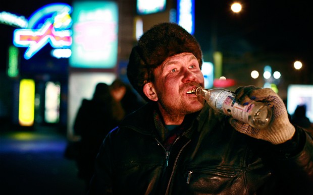 Nici în băutul alcoolului nu sunt buni rușii. „Pot să nu mănânce, dar nu pot să nu bea – o altă caracteristică specifică rușilor. Votca a devenit o importantă parte a culturii ruse. Alcoolul este elementul fără de care rușii nu pot și nici nu vor să trăiască. Dacă în alte țări se spune că „cel ce se scoală mai devreme își face bani de-o pâine”, atunci pentru ruși se poate spune că „cel ce se scoală mai devreme va avea ce să bea”. Chinezii amintesc despre faptul că Elțîn a fost alcoolic.