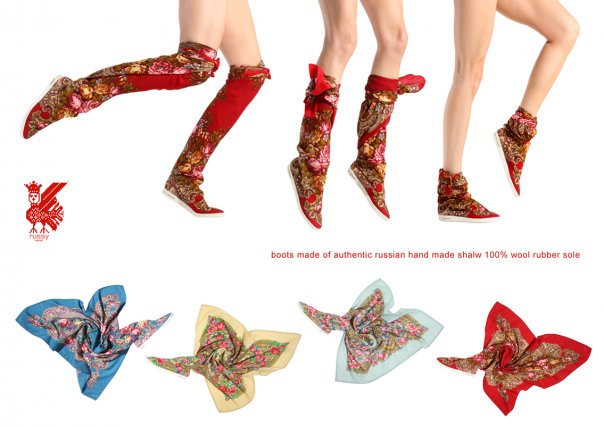 Brandul italian, Judari, a lansat o noua colectie de incaltaminte inspirata din folclorul rusesc. Incaltamintea trendy este compusa dintr-un batic rusesc. Aceasta mai seamana cu aripile lui Alkonost, pasare-fecioara a zeului Soare, care aduce noroc.