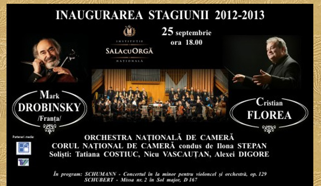 Originar din Baku, elev al marelui Mstislav Rostropovici, Mark Drobinsky, de mai mulți ani stabilit în Franța, a cântat cu cele mai renumite orchestre și cunoscuți muzicieni din lume. De asemenea, în cadrul programului va răsuna Missa în Sol major de Schubert, în interpretarea Corului Național de Cameră, condus de Ilona Stepan, a soliștilor vocali Tatiana Costiuc (soprană), Nicu Vascauțan (tenor), Alexei Digore (bas) și a Ocrhestrei Naționale de Cameră. La pupitrul dirijoral se va produce maestrul Cristian Florea.