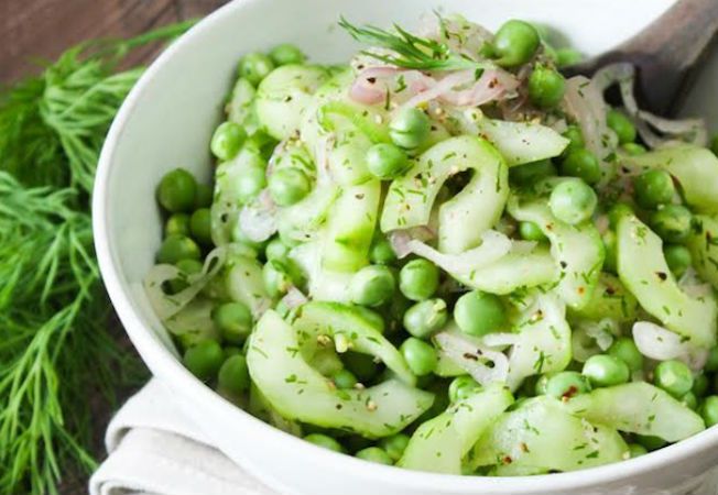 Salată plină de vitamine, din castraveţi, mazăre şi mărar