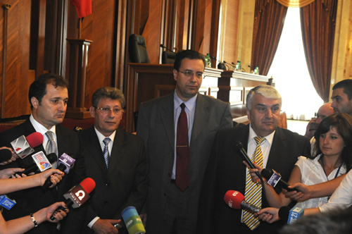 Tot joi, parlamentul a votat, in prima lectura, restructurarea guvernului si a luat act de demisia guvernului Greceanai 2. Apropo, nici de data acesta fostul premier nu a venit sa-si prezinte demisia in fata deputatilor. Potrivit lui Ghimpu, intrucat Zinaida Greceanai a ales mandatul de deputat, iar in locul ei prim-ministru interimar a fost numit Vitalie Parlog, era cazul ca cel din urma sa vina in plenul parlamentului. „Refuzul de a veni in parlament este o sfidare a organului legislativ si vine in contradictie flagranta cu bunul-simt”, a spus Mihai Godea, deputat PLDM. „Inseamna ca nu respectati statul, Constitutia, nici pe cetatenii care v-au votat”, le-a spus si Mihai Ghimpu comunistilor.