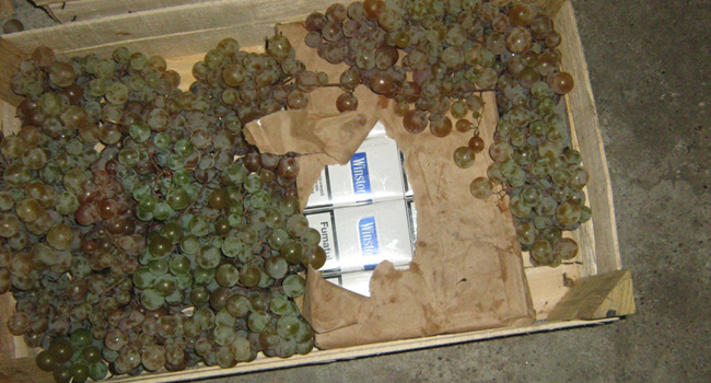 Poliţiştii de frontieră au solicitat inspectorilor vamali efectuarea unui control amănunţit asupra autoturismului, având la bază valorificarea unei informaţii. În urma controlului, poliţiştii de frontieră au descoperit ascunse şi nedeclarate 7200 de ţigarete marca Winston de provenienţă R. Moldova în lăzile cu struguri.