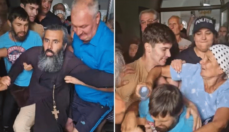 Scandalul de la Grinăuți: Credincioșii care au tras un preot de păr și barbă și l-au scos împreună cu familia sa din biserică, trimiși în judecată