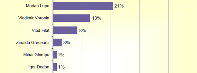 În ceea ce priveşte funcţia de premier, majoritatea respondenţilor care au putut răspunde – 28 % – optează pentru Vlad Filat. La o mare distanţă urmează Igor Dodon cu 6% şi Marian Lupu cu 3%. Este semnificativ faptul că 50% nu au ştiut cine e cel mai potrivit pentru şefia Guvernului.