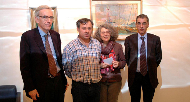 Foto: Ambasadorul Franţei Gerard Guillonneau, Ştefan Coman, soţia ambasadorului şi directorul Alianţei Franceze Emmanuel Skoulios