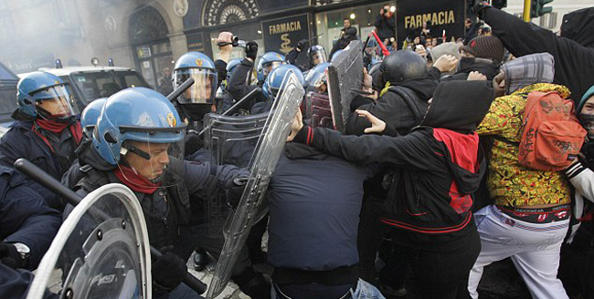 La Milan au avut loc ciocniri dintre poliţie şi studenţi, iar la Palermo o bancă a fost atacată cu ouă şi petarde. La Roma, sute de studenţi au ocupat piaţa universitară Sapienza.