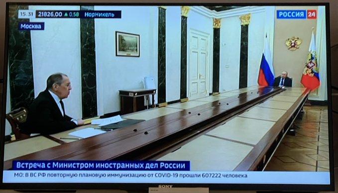 Imaginile respective au fost obiectul a numeroase glume pe rețelele sociale. Lavrov a fost și el așezat la o masă lungă în cadrul convobirii de luni cu Vladimir Putin.