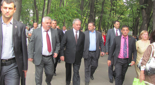 … așadar, se opreau la masa fiecărei etnii, gustau din bucate, sorbeau din tăriile propuse, uneori golind paharul până la fund, alteori doar pe juma`. Depindea, probabil, nu atât de etnie, cât de tărie… La moldoveni (a participat și o asemenea etnie la Festival!), cei trei au gustat vin și sarmale, la azeri au băut cognac, tot cognac au servit și la armeni, la ucraineni au mâncat colțunași, iar țiganii (romii) le-au turnat șampanie. Cei trei s-au comportat diferit. Președintele Timofti era atent și moderat, premierul Filat mi s-a părut trist și abătut, iar Marian Lupu era degajat, dezlănțuit, mânca cu gura plină, toată ființa sa fremăta, plină de optimism. Având o dispoziție excelentă (poate de aceea că Filat n-avea dispoziție), Lupu a ridicat un toast și pentru „Unire”, dar a precizat cu multe subînțelesuri pentru care „Unire” anume – „pentru unirea tuturor etniilor”. Apropo, tot despre Lupu: când a ajuns în „tabăra” romilor și când a apărut o focoasă și dulce reprezentantă a acestei etniei, dansând din buric în fața înaltelor fețe, președintele Timofti și premierul Filat au încercat să-și administreze cu pudicitate privirile, pe când Lupu o mânca din ochi, sorbind-o cu niște priviri marcate adânc de hedonism plurietnic și multicultural. Mă rog, nu-i acesta cel mai mare păcat. Numai că din toată povestea asta bahico-culinară răzbate și un semn de întrebare-nedumerire: de ce oare, și anul acesta, reprezentanții etniilor nu vorbeau cu cei trei conducători ai RM în limba etniilor lor sau în limba oficială a statului, ci în limba rusă?