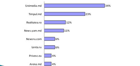 La întrebarea: „Ce portaluri de ştiri accesaţi când doriţi să vă informaţi?”, 23 la sută dintre respondenţi au spus Timpul.md.