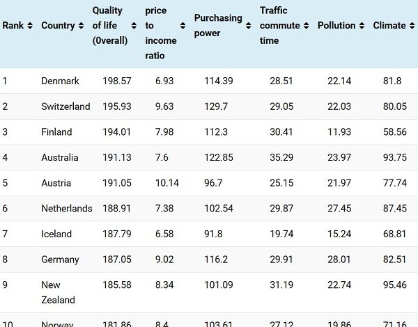 Pentru raportul Quality of Life Rankings For 2019, CEOWORLD a intervievat peste 120.000 de persoane din 70 de țări din Asia, cele două Americi, Europa, Orientul Mijlociu și Africa, atât din punctul de vedere al calității vieții, cât și din cel al ușurinței cu care se dezvoltă o afacere.