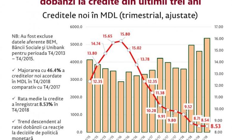 ”Rata medie ponderată a dobânzii la creditele bancare acordate persoanelor fizice pentru imobil s-a redus de la 7,53 la sută anual, în ianuarie 2018, la 6,40 la sută, pe sfârşit de an, iar suma lunară a creditelor contractate de populaţie s-a dublat pe parcursul anului. Băncile comerciale au acordat în anul trecut populaţiei credite pentru imobil în sumă de peste 1,8 miliarde lei, arată date ale Băncii Naţionale a Moldovei”, scrie Vlad Bercu.