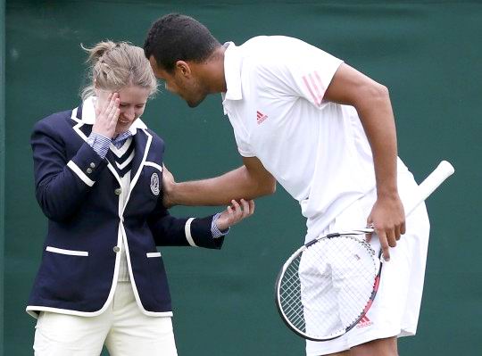 Văzând-o în aşa situaţie, Tsonga s-a dus îngrijorat la ea să vadă cum se simte. A consolat-o, îmbărbătând-o apoi cu mâna pe umăr. A fost răsplătit cu un zâmbet: „Mulţumesc! OK, pot continua!”. În schimb, meciul a trebuit întrerupt din pricina ploii la 6-4, 1-1 pentru Fish.