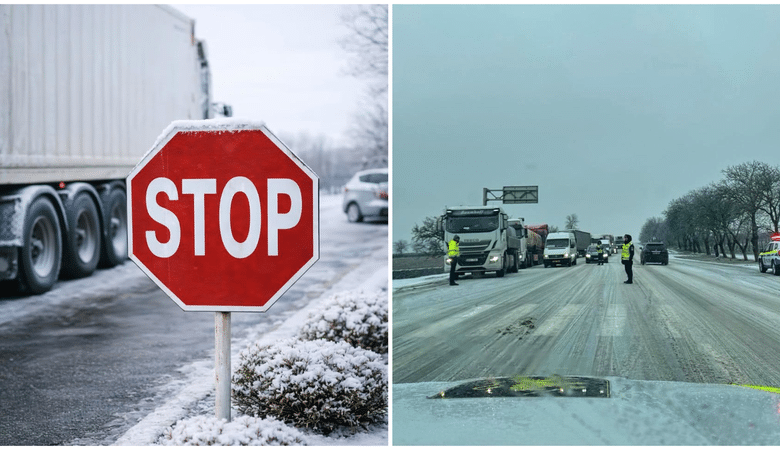 Circulația camioanelor rămâne sistată temporar, până la ameliorarea condițiilor de trafic. Transportatorii trebuie să se conformeze indicațiilor autorităților și să își planifice călătoriile în funcție de restricțiile temporare”, anunță MAI.