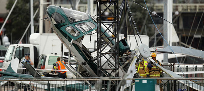 Un elicopter B2 Squirrel monta instalaţiile pentru Pomul de Crăciun din oraşul Auckland, când la un moment dat aparatul a tresărit şi s-a prăbuşit dezmembrându-se. Catastrofa s-a întâmplat din cauza unui cablu pe care l-a atins elicea elicopterului. Pilotul, din fericire, a rămas în viaţă şi a ieşit singur din cabină şchiopătând.