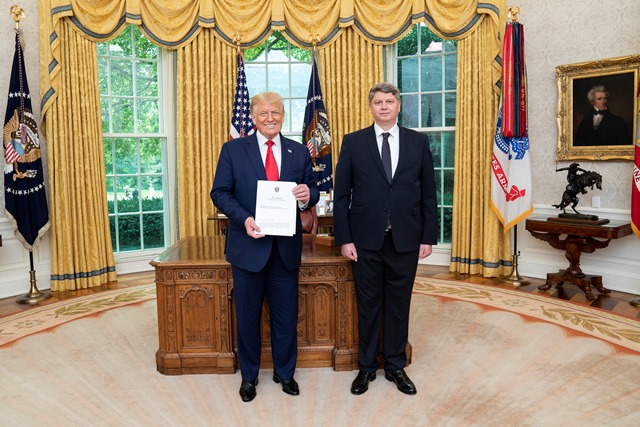 Eugen Caras, ambasadorul Republicii Moldova în Statele Unite ale Americii, și-a prezentat scrisorile de acreditare, președintelui american, Donald J. Trump. Ceremonia oficială a avut loc la Casa Albă pe 17 iulie.