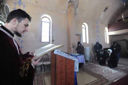 In biserica aceasta care se ruineaza inainte de a fi fost terminata, doi barbati si doua femei, cu capetele ingropate in gulere, stau ciucure in jurul unui godin, ascultand cantarea cand in romana, cand in maghiara, a parintelui Róbert Lukács. Sobita de fier a fost instalata cu doar o zi inainte. Un vecin de-al preotului s-a milostivit si i-a dat-o de pomana. Credinciosii au venit la slujba cu cate o legatura de lemne sub brat. Din timp in timp, cand si sfintii de pe iconostas incep sa tremure de frig, un barbat ingenuncheaza in fata godinului si mai arunca o mana de vreascuri pe foc. Atunci pare ca omul se inchina la acest obiect care, cu aura lui de caldura, ii tine pe toti vii la slujba.