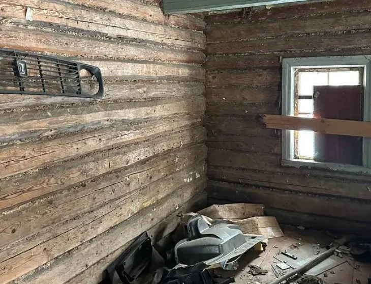 Una dintre case are o suprafață de 43 m², cu acoperiș din șindrilă și o sobă în interior.