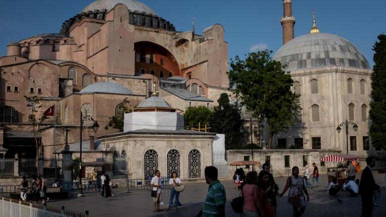 Capodoperă arhitecturală bizantină datând din secolul al VI-lea, Sfânta Sofia este unul din principalele obiective turistice din Istanbul şi a atras circa 3,8 milioane de vizitatori în 2019. Convertită în moschee după ocuparea Constantinopolului de către otomani, în 1453, ea a fost transformată în muzeu în 1934 de către primul preşedinte al Republicii Turcia, Mustafa Kemal, cu intenţia de a oferi acces întregii lumi la această capodoperă.