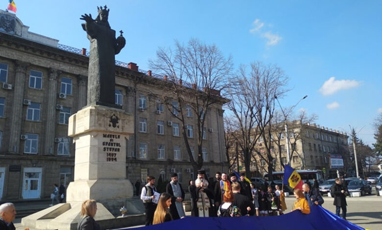 Bălțenii au participat la o slujbă religioasă și au mărșăluit prin centrul orașului pentru a sărbători Unirea cu România.