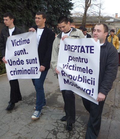 “MAE nu uită 7 aprilie 2009”, “Victime sunt. Unde sunt criminalii?”, “Vinovaţii să fie judecaţi. Ne sunt datori cu răspunsuri” sau “Dreptate pentru victimele Republicii Moldova!” au fost câteva dintre mesajele pe care tinerii MAE le-au expus în faţa Procuraturii. “Regretăm că trebuie să vorbim astăzi despre victime şi despre criminali. Sau, mai bine spus, că vorbim despre căutarea criminalilor. Pentru că a trecut un an de zile de atunci, dar o întrebare grea rămâne în actualitate: unde sunt vinovaţii? Punem această întrebare în primul rând procurorilor Republicii Moldova, de la care ne-am fi aşteptat să răscolească totul până când vor da de urma criminalilor”, a declarat Andrei Păvăloi, preşedintele Forului Tineretului European al MAE.