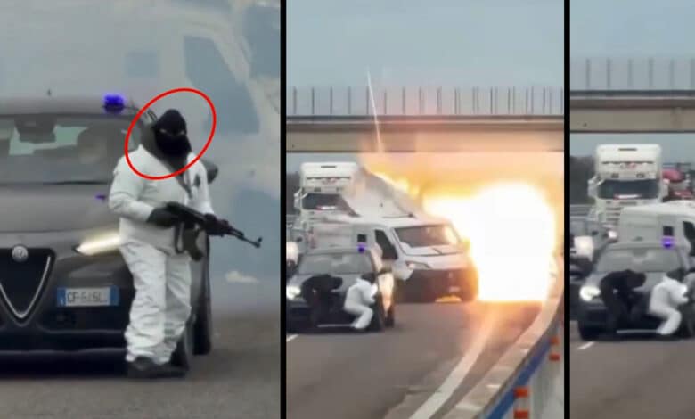 Infractorii au creat o barieră pe drum prin incendierea unui autovehicul, obligând astfel furgonul blindat să se oprească. În imaginile surprinse, apar cel puțin șase indivizi înarmați, unii în ținute de culoare închisă, alții purtând combinezoane albe și măști faciale, mai arată Il Post.
