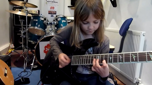Fetita, originara din Thatcham, Berkshire, Marea Britanie, a inceput sa cante la chitara de la sase ani. Iar piesa celor de la Stratovarius nu este singura pe care Zoe Thomson a interpretat-o cu brio, demonstrandu-si talentul incredibil.