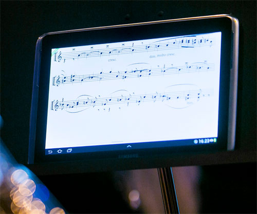 În plus, utilizarea tabletelor Samsung Galaxy Note 10.1 ar urma să schimbe metodele de lucru, mai ales ale dirijorului, care va putea să întoarcă paginile partiturii pentru întreaga orchestră sau doar pentru o parte a ei.