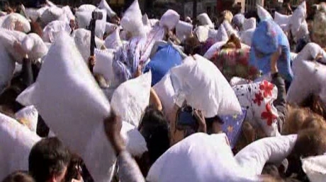 New York-ul organizează o luptă cu perne al cincilea an consecutiv. În circa 130 de oraşe din lumea întreagă au avut loc lupte spontane cu perne.