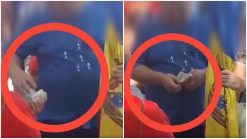 Manifestantul reținut astăzi de oamenii legii, după mitingul socialiștilor, a fost filmat cum primește și numără mai multe bancnote.