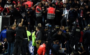 Forţele de ordine şi medicii au intervenit pentru a acorda primele îngrijiri, fanii acuzând loviri la picior, piept şi cap.