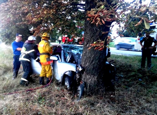 Pentru a scoate victimele accidentului din maşină a fost nevoie de intervenţia exhipei de descarcerare.