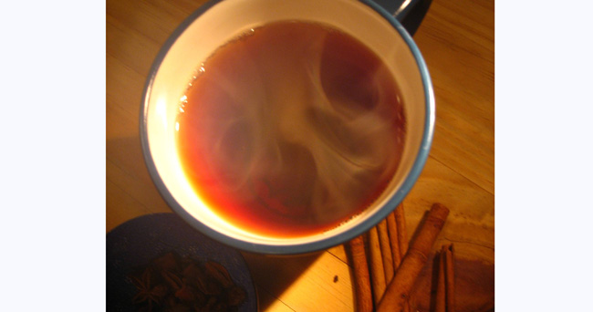 Vin (de preferinţă roşu şi de butuc, cine are, sau alte variaţiuni pe această temă), o portocală, un măr, un pliculeţ de ceai de fructe aromat, piper boabe, scorţişoară praf şi cel puţin 0 grade Celsius afară.