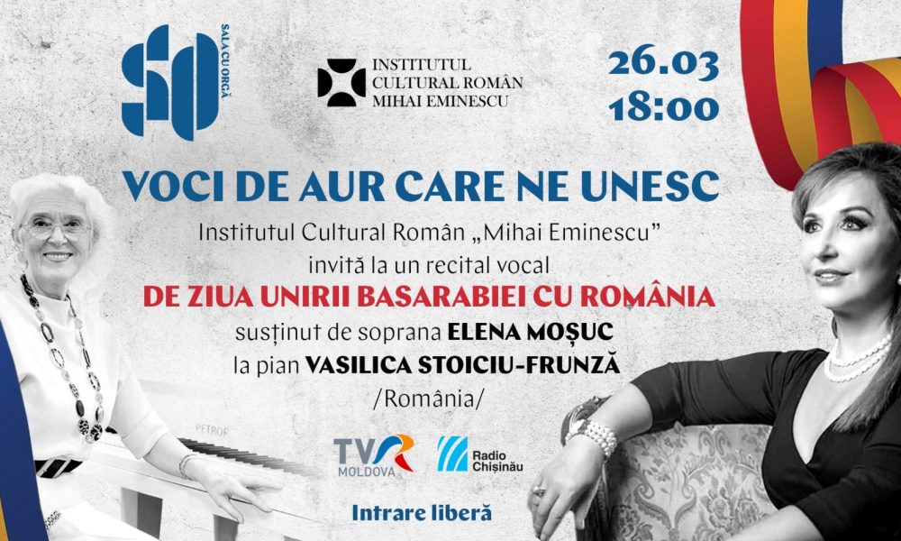 Două mari talente – celebara soprana Elena Moșuc din Republica Moldova, distinsă cu premiul „Oscar della Lirica” și pianista din România Vasilica Stoiciu-Frunză, vor evolua la Sala cu Orgă din Chișinău într-un concert extraordinar dedicat Unirii din 27 martie 1918. Întitulat simbolic „Voci care ne unesc”, recitalul este organizat în cooperare cu Institutul Cultural Român „Mihai Eminescu”.