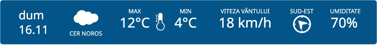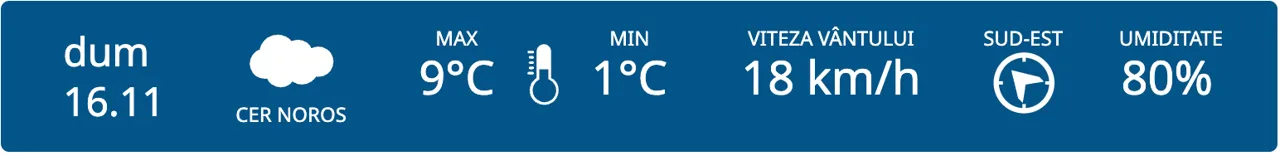 Meteorologii prognozează pentru astăzi cer noros în toată țara. Maximele termice vor fi cuprinse între +9 și +14 grade Celsius.