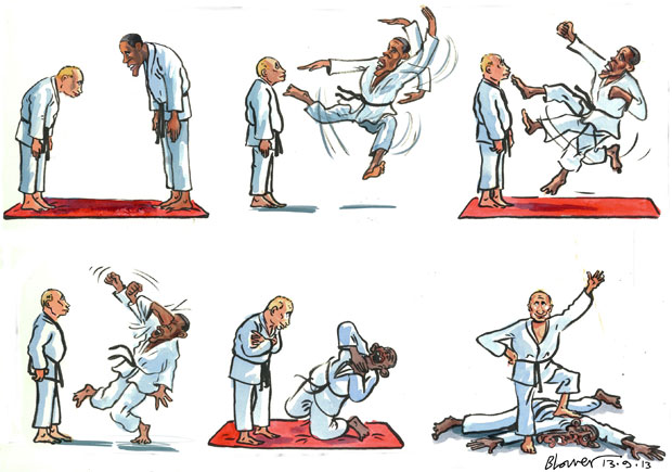 Nu a scăpat neinsultat nici preşedintelui SUA, Barack Obama. În Rusia el este comparat cu Tuzik – nume dat unui „câine amărât de talie mică”. În plus, deputatul Dumei de Stat Irina Rodnina a publicat o fotografie editată în care Barack şi Michelle Obama privesc cu duioşie nişte banane.