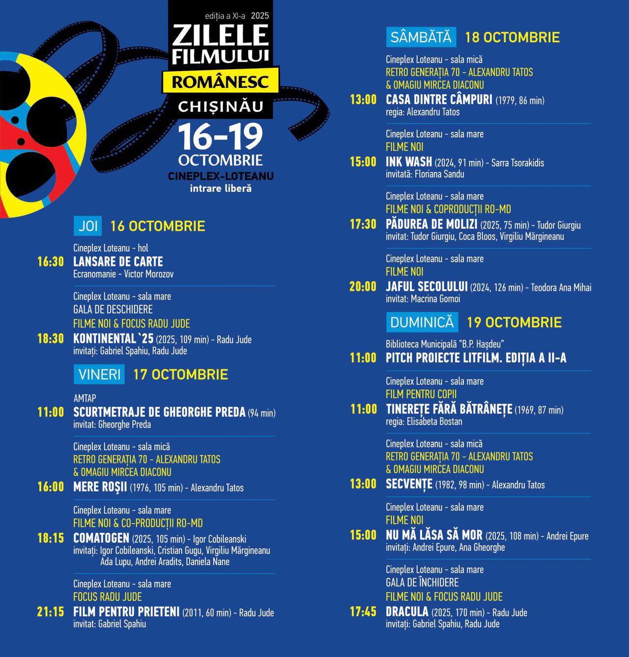 Menționăm că intrarea la proiecții este liberă, cu rezervarea de bilete cu valoare zero de la casieria Cineplex-Loteanu în zilele de dinaintea evenimentului.