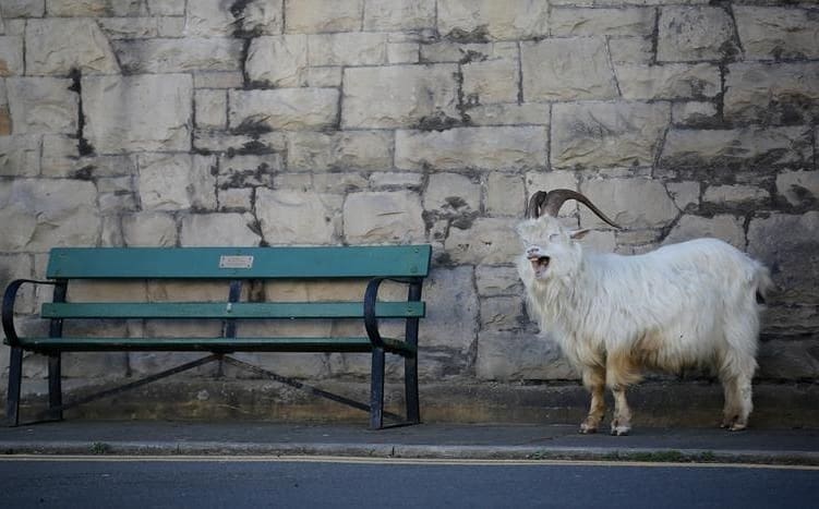 Дикие козлы захватили британский город, пустующий на карантине. Они гуляют по пустым дорогам и объедают кусты