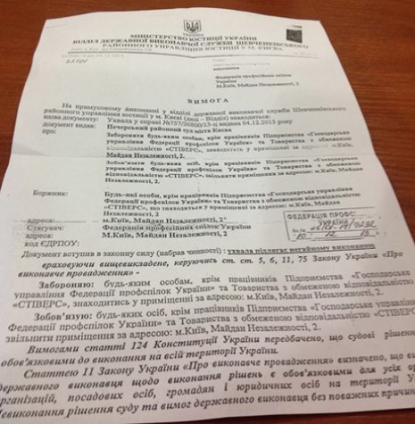 «Несмотря на то, что у нас есть контракт с Профсоюзами, сегодня нас оповестили, что районный трибунал постановил эвакуировать насильно всех из Дома Профсоюзов».